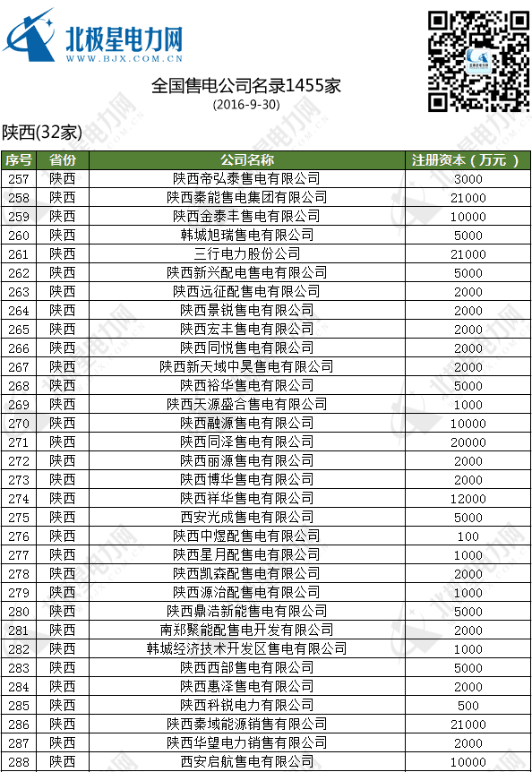 全國售電公司名錄(1455家)