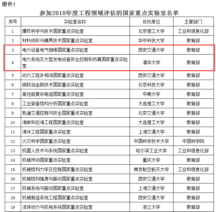 附件:1. 參加2018年度工程領(lǐng)域評估的國家重點(diǎn)實驗室名單