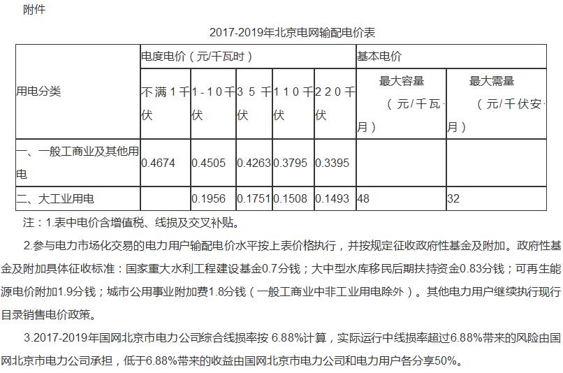 北京電網(wǎng)公布2017-2019年輸配電價(jià)