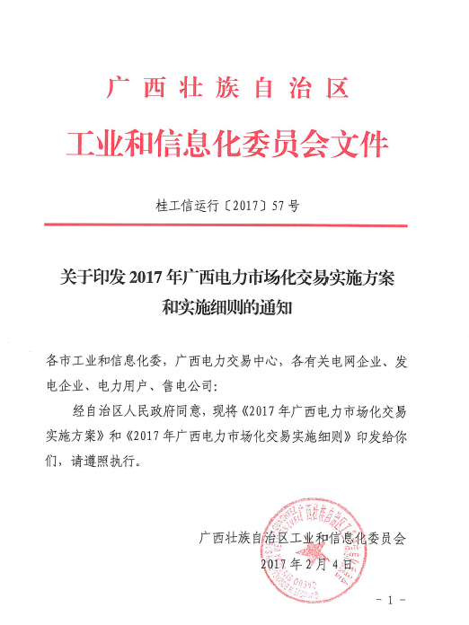 廣西2017電力市場(chǎng)化交易實(shí)施方案和實(shí)施細(xì)則印發(fā)(附全文)