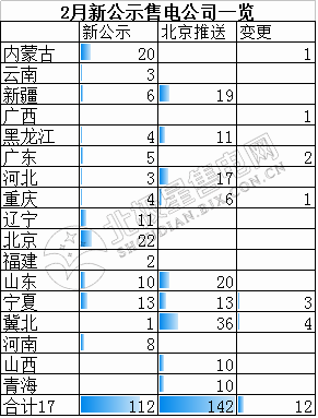 2月份因?yàn)槭切≡拢又?jié)假日較多,公示數(shù)量照1月份有所減少,只有266家,其中新公示112家,然而由北京電力交易中心推送的售電公司卻多達(dá)142家。