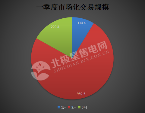 2018年,電力交易市場(chǎng)化依然是電力改革的重頭戲。從北京電力交易中心發(fā)布的市場(chǎng)化交易規(guī)模數(shù)據(jù)來(lái)看,一季度電力交易規(guī)模達(dá)到1303.2億千瓦時(shí),有15個(gè)省份的售電公司參與電力直接交易。1月交易規(guī)模113.4億千瓦時(shí),組織東北送山東、山西低谷送湖北抽蓄、甘肅送重慶發(fā)電權(quán)、陜西送重慶等市場(chǎng)化交易12.6億千瓦時(shí);2月交易規(guī)模969.5億千瓦時(shí),開(kāi)展2018年浙江省間及省內(nèi)發(fā)電企業(yè)集中競(jìng)價(jià)交易,交易規(guī)模914.6億千瓦時(shí);3月交易規(guī)模220.3億千瓦時(shí),組織銀東直流西北送山東、京津唐地區(qū)等電力直接交易118.9億千瓦時(shí)。