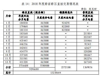 截至2018年底,跨區(qū)跨省電力直接交易共完成交易電量132.39億千瓦時,其中:銀東直流完成直接交易電量92.97億千瓦時,錫盟送山東完成直接交易電量25.72億千瓦時,魯固直流完成交易電量13.70億千瓦時。
