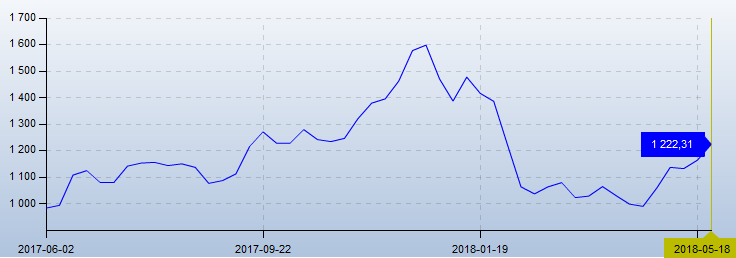5月16日至22日,環(huán)渤海動(dòng)力煤價(jià)格指數(shù)報(bào)收于571元/噸,環(huán)比下行1元/噸。