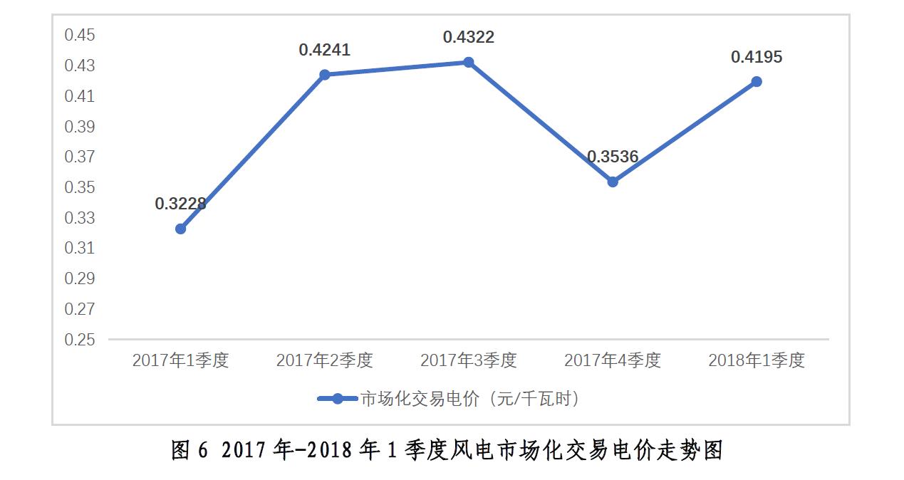 2018年1季度,大型發(fā)電集團(tuán)風(fēng)電機(jī)組累計(jì)上網(wǎng)電量534億千瓦時(shí),占其總上網(wǎng)電量的6.3%;風(fēng)電市場(chǎng)化交易電量177億千瓦時(shí),市場(chǎng)化率為33.3%,其中跨區(qū)跨省交易電量約113億千瓦時(shí),占市場(chǎng)化交易電量比重63.8%。