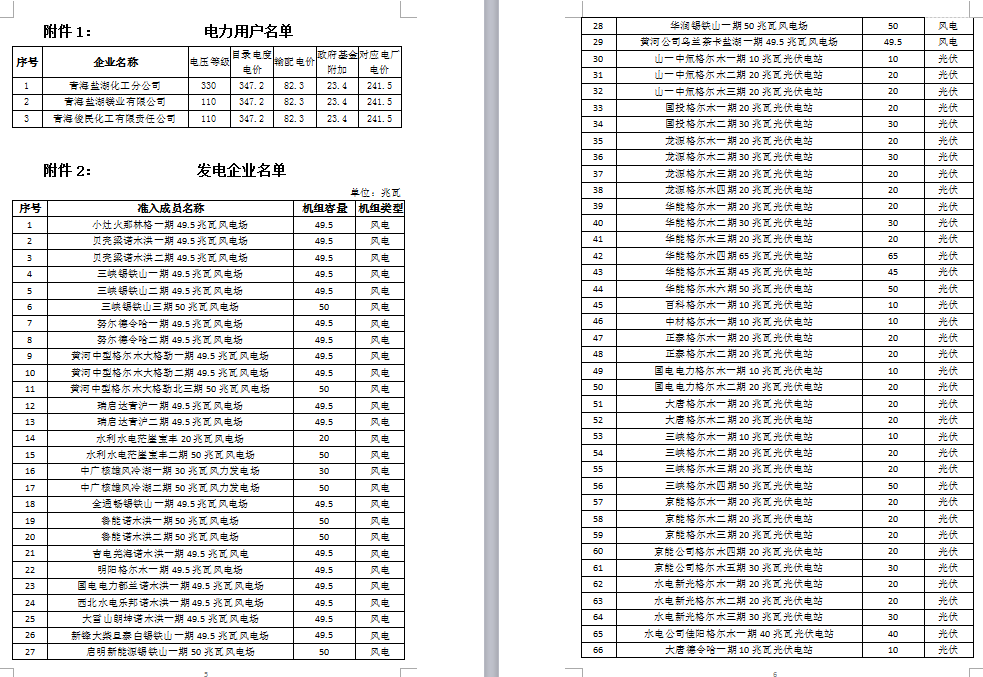海西地區(qū)符合國(guó)家基本建設(shè)審批程序的集中并網(wǎng)光伏、風(fēng)電發(fā)電企業(yè)(見(jiàn)附件二)。