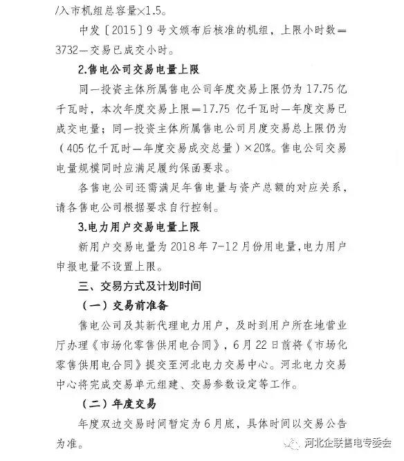 河北南部電網(wǎng)2018年第二批電力用戶電力直接交易安排:售電公司年度交易上限17.75億千瓦時(shí)