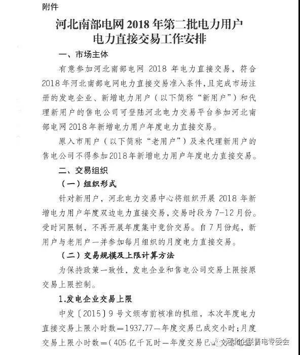 從河北企聯(lián)售電專委會(huì)獲悉,河北電力交易中心有限公司下發(fā)《河北南部電網(wǎng)2018年第二批電力用戶電力直接交易工作安排》的通知,針對(duì)新用戶,