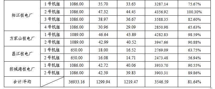 因此,上述機(jī)組在1月至6月的核電設(shè)備平均利用率偏低。