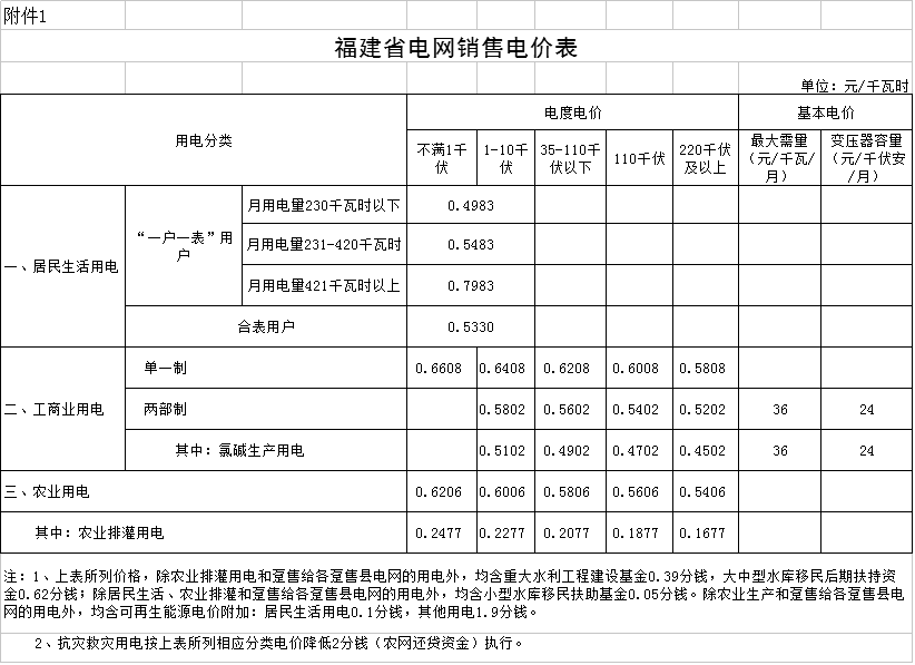 附件:1.福建省電網(wǎng)銷售電價(jià)表 附件點(diǎn)擊下載.rar