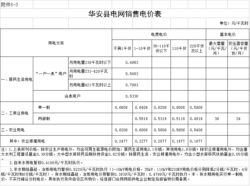 5.漳州市各縣級(jí)電網(wǎng)銷售電價(jià)表