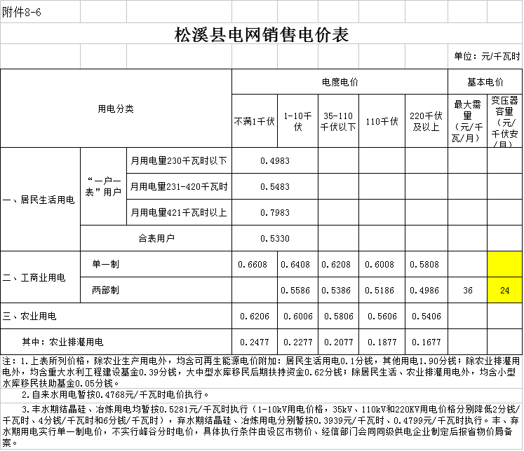 8.南平市各縣級(jí)電網(wǎng)銷售電價(jià)表