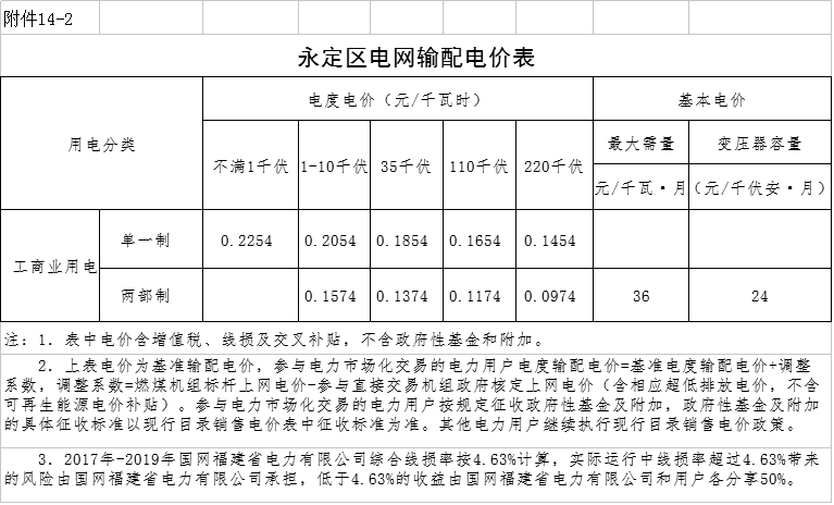 14.龍巖市各縣級(jí)電網(wǎng)輸配電價(jià)表