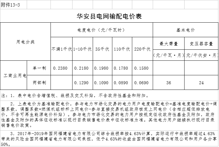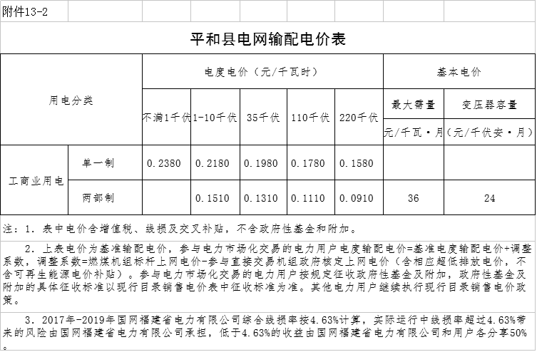 13.漳州市各縣級(jí)電網(wǎng)輸配電價(jià)表
