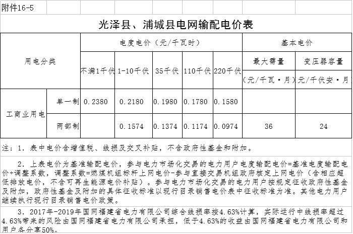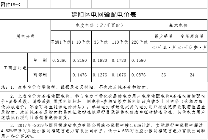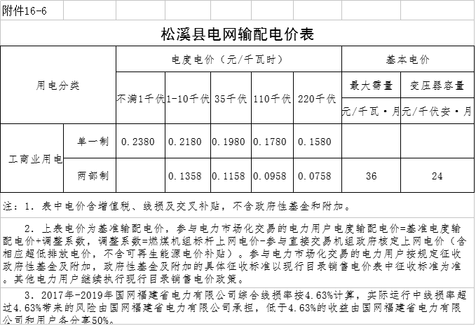 16.南平市各縣級(jí)電網(wǎng)銷售電價(jià)表