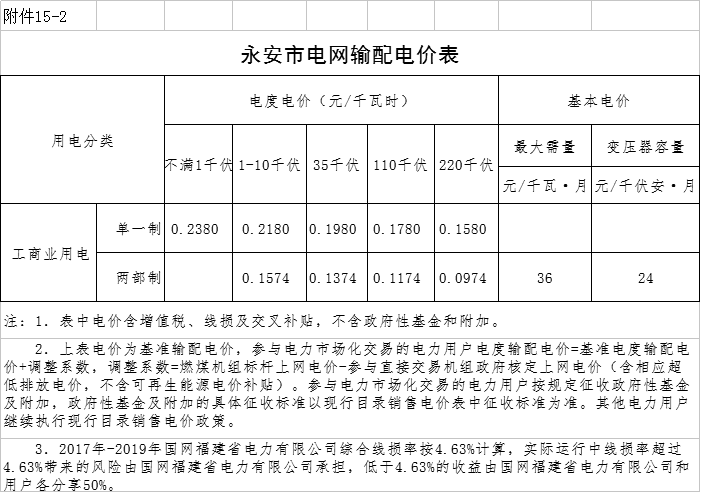 15.三明市各縣級(jí)電網(wǎng)輸配電價(jià)表