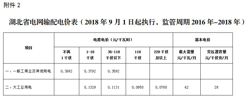 2.湖北省電網(wǎng)輸配電價表(2018年9月1日起執(zhí)行,監(jiān)管周期為2016年-2018年)
