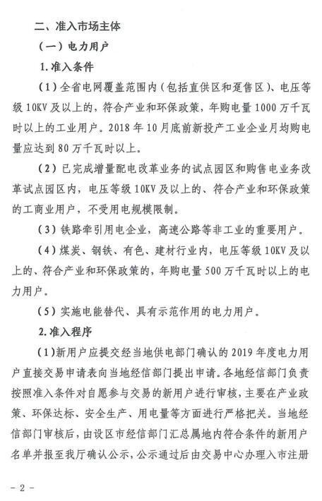 電力用戶準(zhǔn)入條件主要有:電壓等級(jí)10KV及以上的,符合產(chǎn)業(yè)和環(huán)保政策,年購(gòu)電量1000萬(wàn)千瓦時(shí)以上的工業(yè)用戶。2018年新投產(chǎn)工業(yè)企業(yè)月均購(gòu)電量應(yīng)達(dá)到80萬(wàn)千瓦時(shí)以上。已完成增量配電改革業(yè)務(wù)的試點(diǎn)園區(qū)和購(gòu)售電業(yè)務(wù)改革試點(diǎn)園區(qū)內(nèi),電壓等級(jí)10KV及以上的、符合產(chǎn)業(yè)和環(huán)保政策的工商業(yè)用戶,不受用電規(guī)模限制。