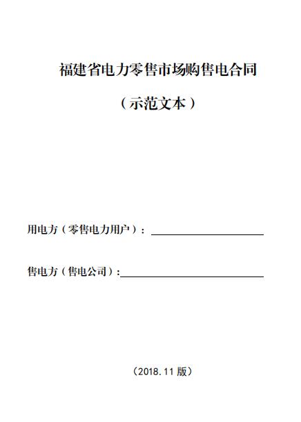 福建能監(jiān)辦日前發(fā)布了《關于印發(fā)福建省電力市場交易相關合同示范文本的通知(閩監(jiān)能市場〔2018〕127號)》,其中公布了福建省電力直接交易三方合同(示范文本)、福建省電力零售市場供電合同(示范文本)、福建省電力零售市場購售電合同(示范文本)、福建省電力市場化交易授權協(xié)議(示范文本)