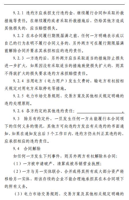 5.3.2 本合同解除后,《高壓供用電合同》其他內(nèi)容繼續(xù)有效,供電方依據(jù)合同約定,按照國家的規(guī)定和程序繼續(xù)向用電方供電,并按國家規(guī)定完成市場化交易電量的清算和收費工作。