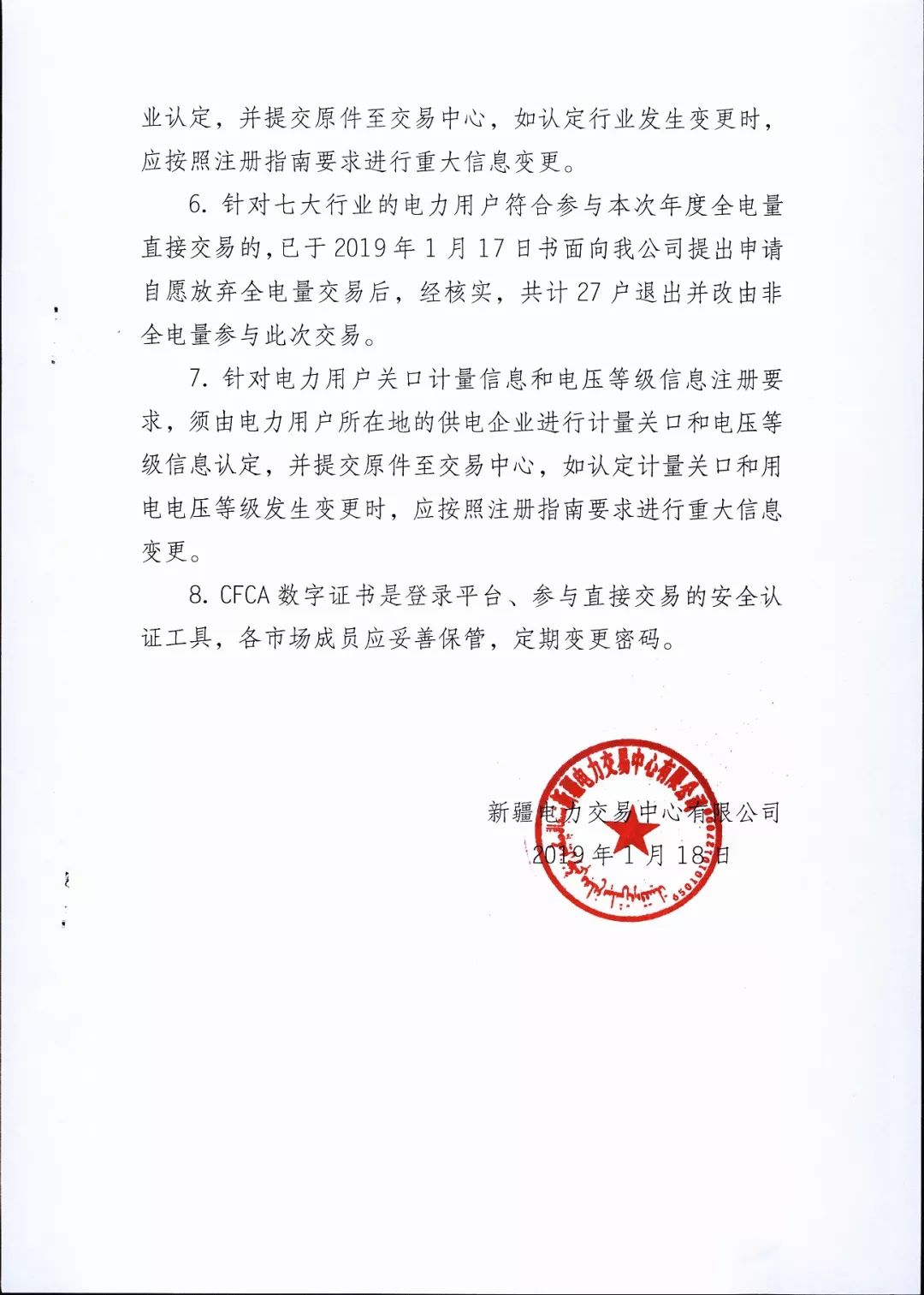 新疆電力交易中心發(fā)布了《新疆電網(wǎng)2019年(年度)電力用戶與發(fā)電企業(yè)直接交易準(zhǔn)入電力用戶名單公告》