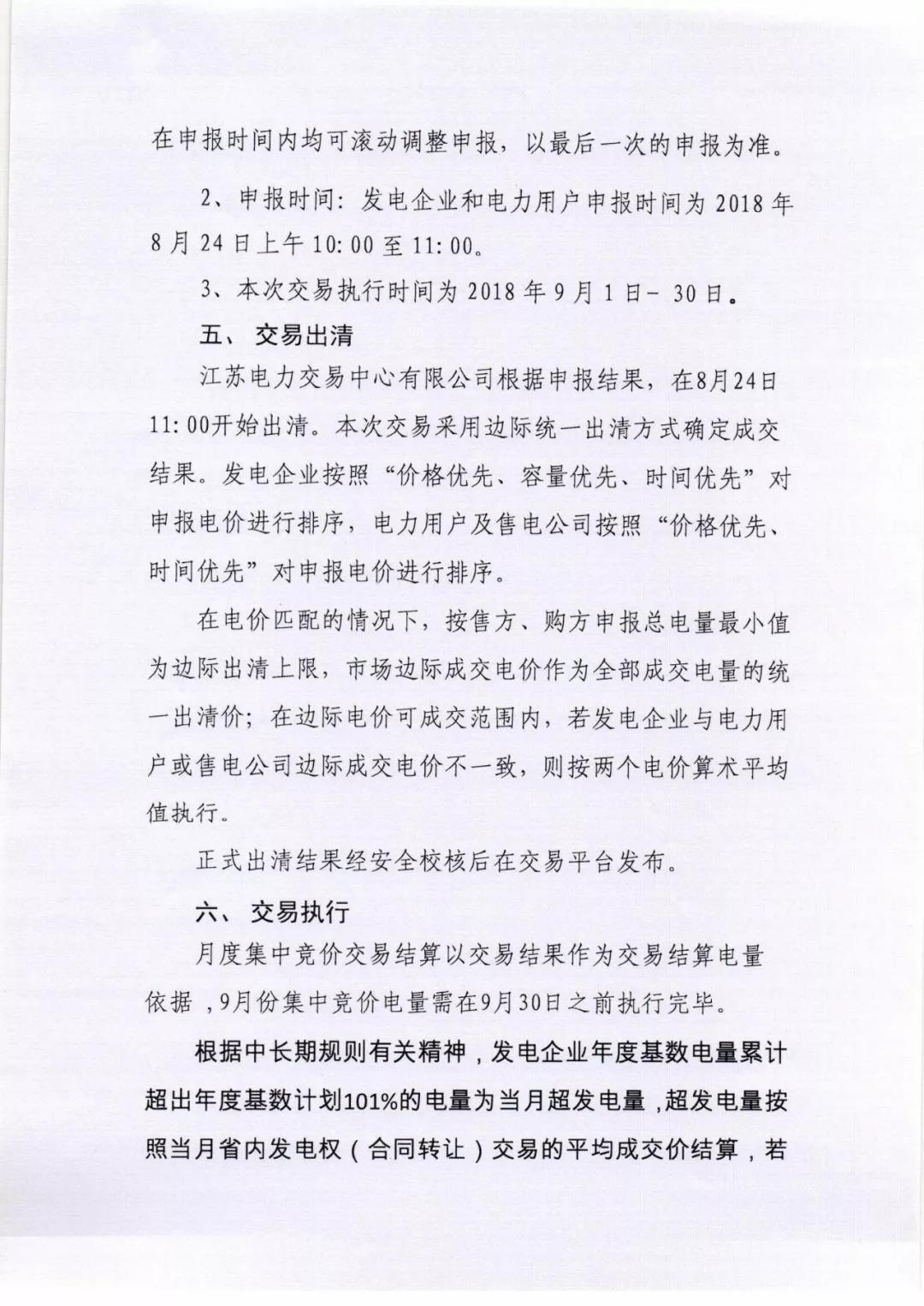 2018年8月份江蘇電力市場(chǎng)月內(nèi)交易公告