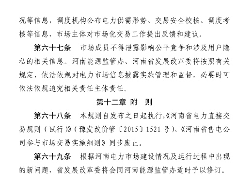 河南省日前發(fā)布了《河南省電力市場(chǎng)交易規(guī)則(試行)》