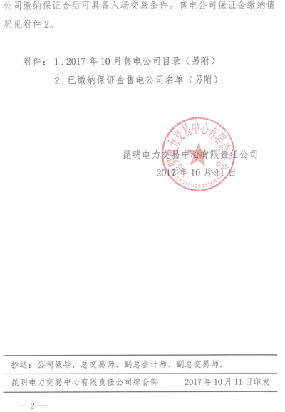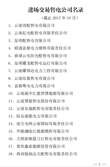 昆明電力交易中心日前公布了2017年10月售電企業(yè)目錄,目錄中共包含61家售電公司,同時(shí),云南已繳納保證金售電公司已達(dá)29家。另外,在昆明電力交易中心發(fā)布的《進(jìn)場交易售電公司名錄(2017年10月)》,目錄上共包含