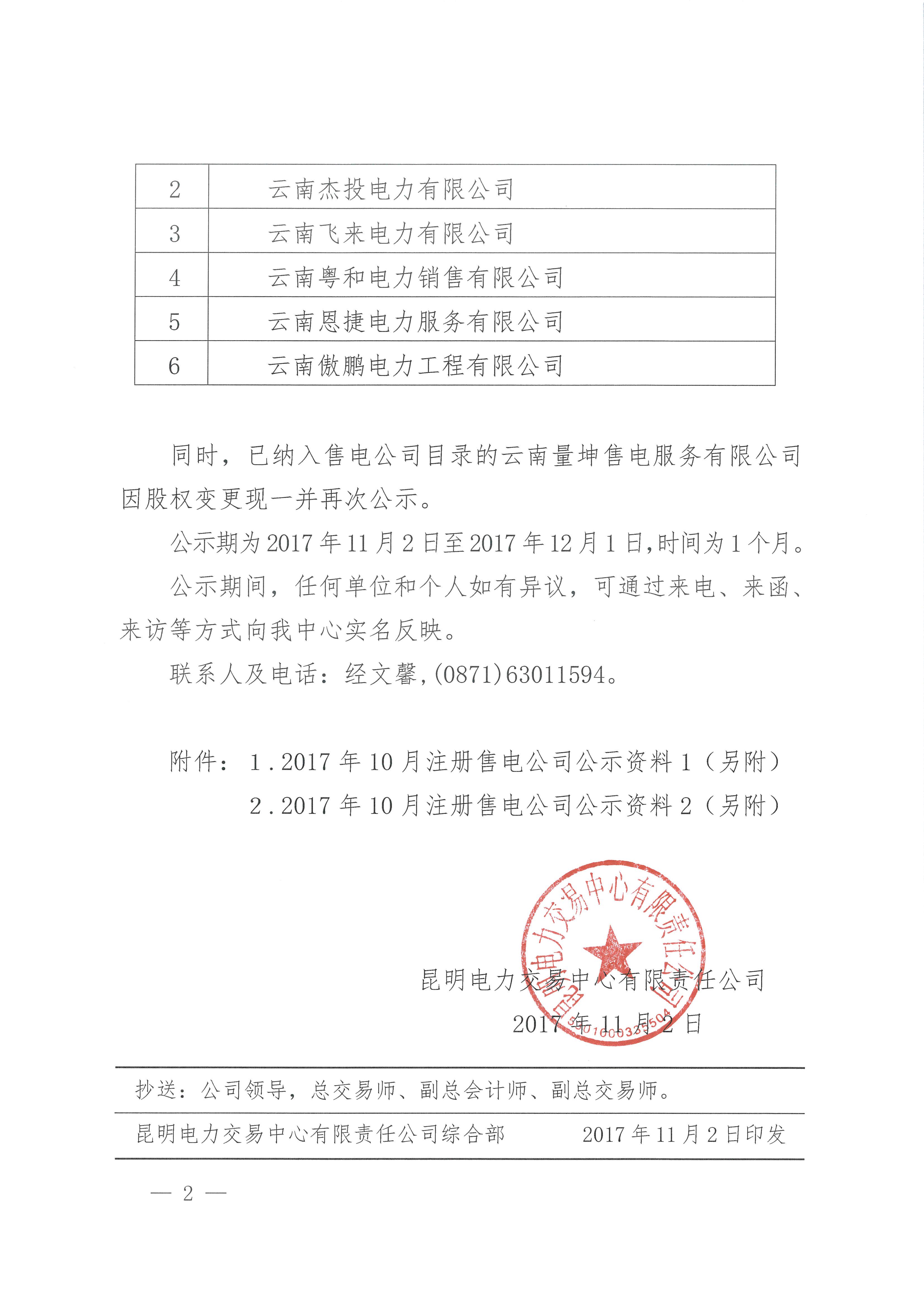 昆明電力交易中心關于公示2017年10月注冊售電公司的公告