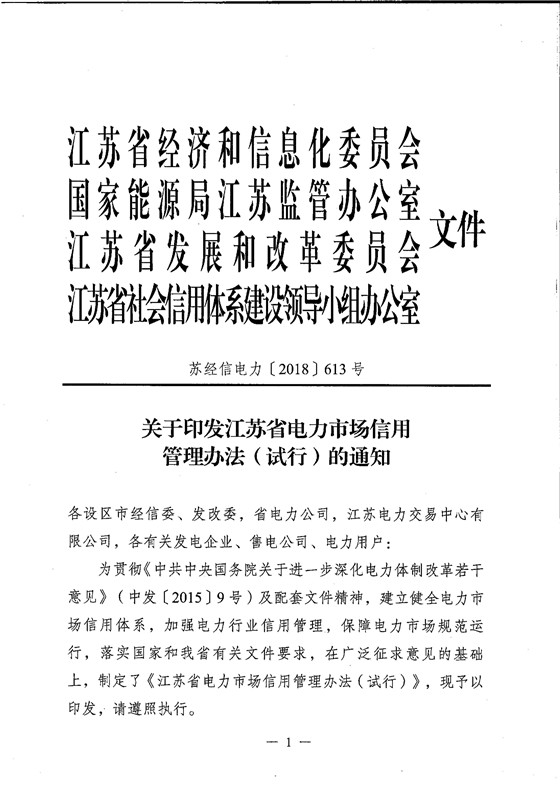 江蘇發(fā)布電力市場信用管理辦法(試行) 3A級售電公司可免交50%履約保函額度!