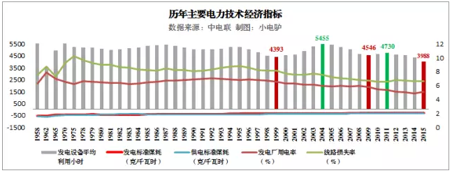 ① 發(fā)供電標(biāo)準(zhǔn)煤耗基本無壓縮空間:發(fā)電煤耗僅從312克/千瓦時降低至297克;