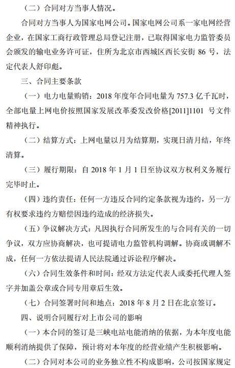長(zhǎng)江電力:三峽電站購(gòu)售電合同公告