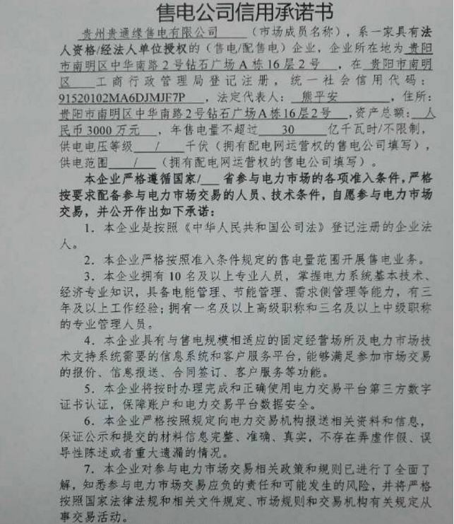 關(guān)于貴州協(xié)鑫售電有限公司等4家企業(yè)注冊成為貴州省電力自主交易市場主體相關(guān)信息的公示