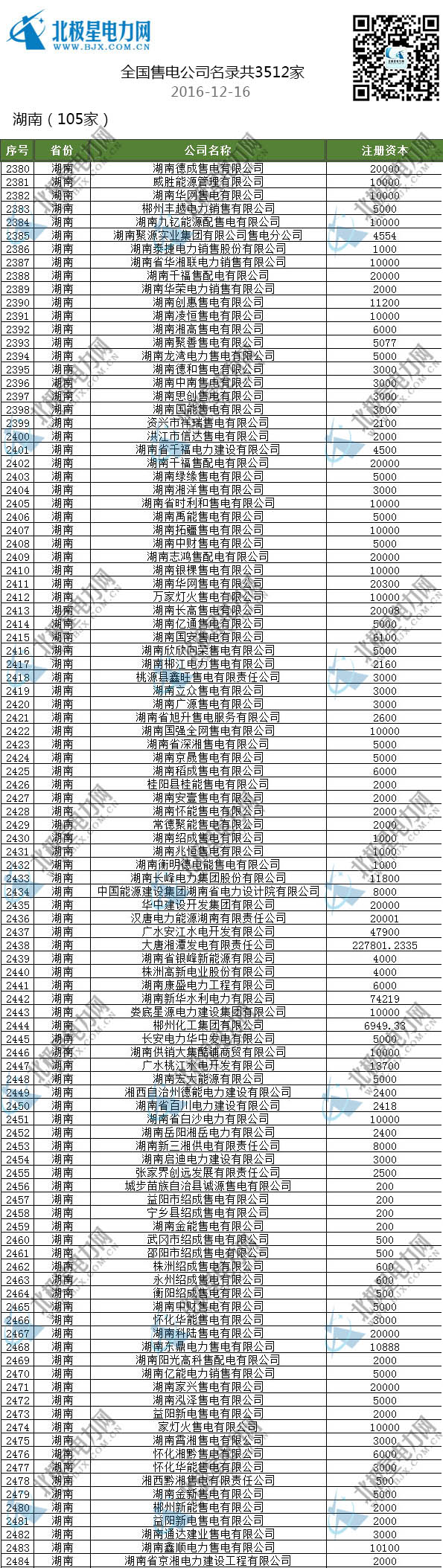 售電公司名單/全國已成立3512家售電公司(截止2016-12-16)