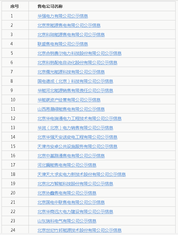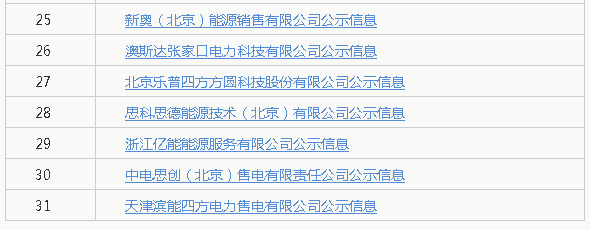 北京新公示31家跨省區(qū)售電公司信息