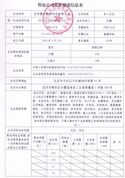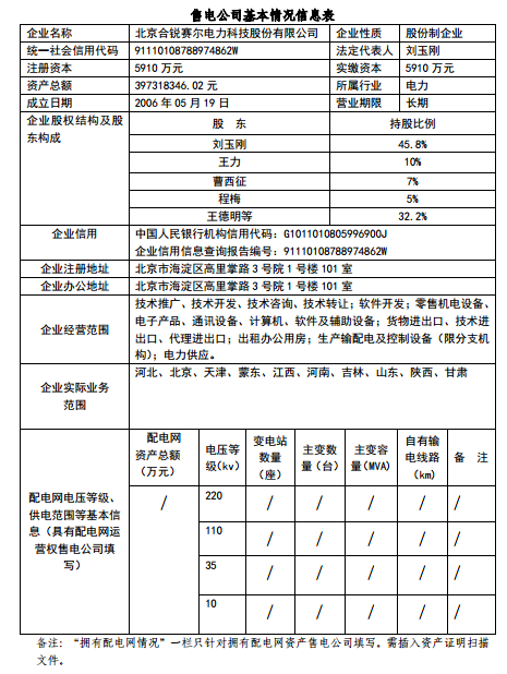 按照國家發(fā)改委、國家能源局《售電公司準(zhǔn)入與退出管理辦法》的要求,北京電力交易中心受理了下列售電公司的注冊申請,對售電公司提交的市場準(zhǔn)入申請材料進(jìn)行了完整性核驗(yàn),現(xiàn)將企業(yè)名單及基本情況予以公示。