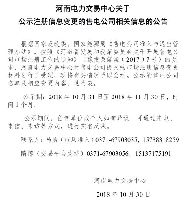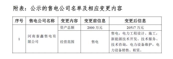 河南公示1家售電公司的注冊(cè)信息變更申請(qǐng)