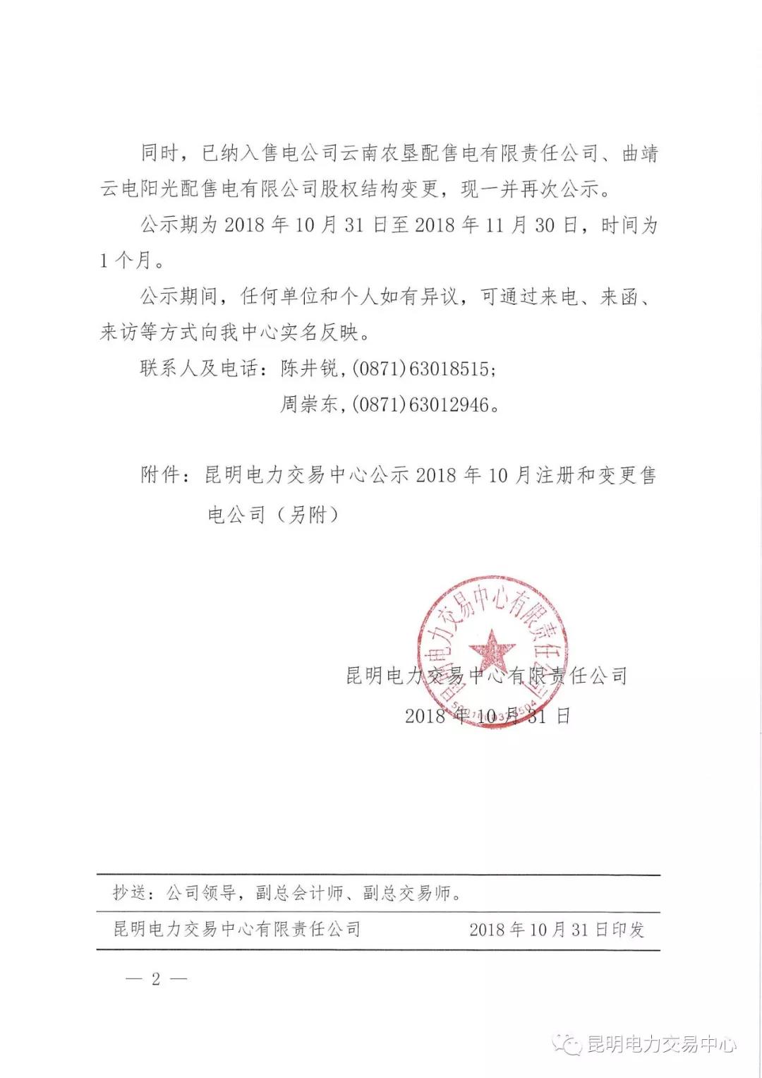 昆明電力交易中心關(guān)于公示2018年10月注冊售電公司的公告