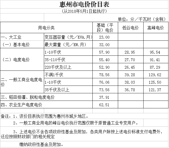 一、全省除深圳市外一般工商業(yè)電度電價(jià)每千瓦時(shí)統(tǒng)一降低0.58分(含稅,下同);深圳市的一般工商業(yè)電價(jià)和大工業(yè)電價(jià)已合并為工商業(yè)及其他電價(jià),其各類工商業(yè)及其他電價(jià)均每千瓦時(shí)統(tǒng)一降低0.12分。各地各用戶調(diào)價(jià)后的具體電價(jià)標(biāo)準(zhǔn)見附件。