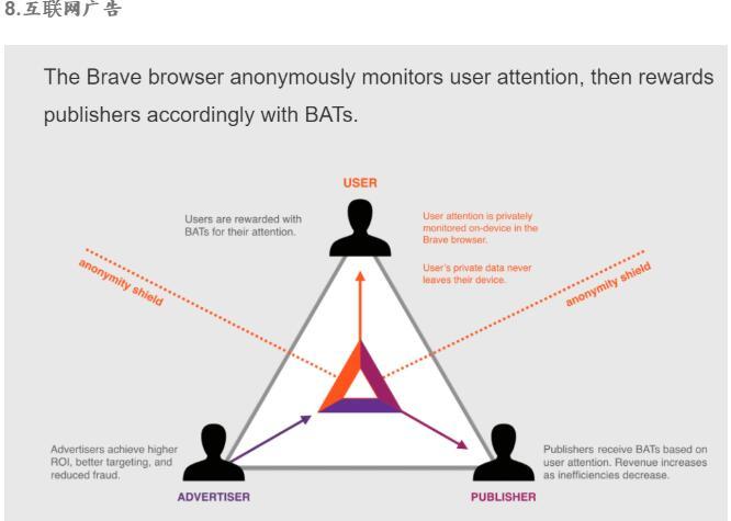 勇敢的最近ICO的基本注意標(biāo)記 (BAT),以補(bǔ)償廣告客戶和用戶。廣告客戶不是像谷歌或Facebook的廣告手段這樣的中間人,而是直接列入基于區(qū)塊鏈的Brave瀏覽器。選擇接收較少但針對(duì)性更強(qiáng)的廣告而不含惡意軟件的用戶。廣告客戶可以獲得更好的支出數(shù)據(jù)。