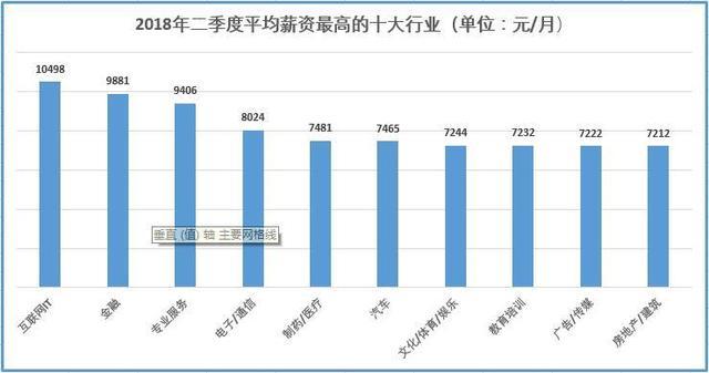 2018年第二季度也不例外。據(jù)BOSS直聘《2018年二季度人才吸引力報告》顯示,互聯(lián)網(wǎng)IT業(yè)的平均薪資為10498元/月,依然位列各行業(yè)平均薪資排行榜首位。