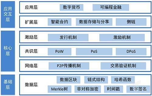 在應(yīng)用層面,圍繞數(shù)字經(jīng)濟(jì)、互聯(lián)網(wǎng)治理和大數(shù)據(jù)發(fā)展中的價(jià)值實(shí)現(xiàn),區(qū)塊鏈規(guī)劃的應(yīng)用場(chǎng)景分為政用、民用、商用3類,包括應(yīng)用層、合約層、激勵(lì)層、共識(shí)層、數(shù)據(jù)層、網(wǎng)絡(luò)層6個(gè)層次。