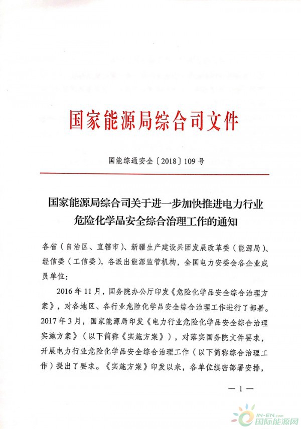 國(guó)家能源局:關(guān)于進(jìn)一步加快推進(jìn)電力行業(yè)危險(xiǎn)化學(xué)品安全綜合治理工作的通知