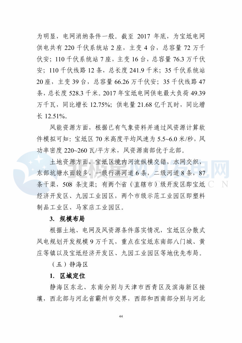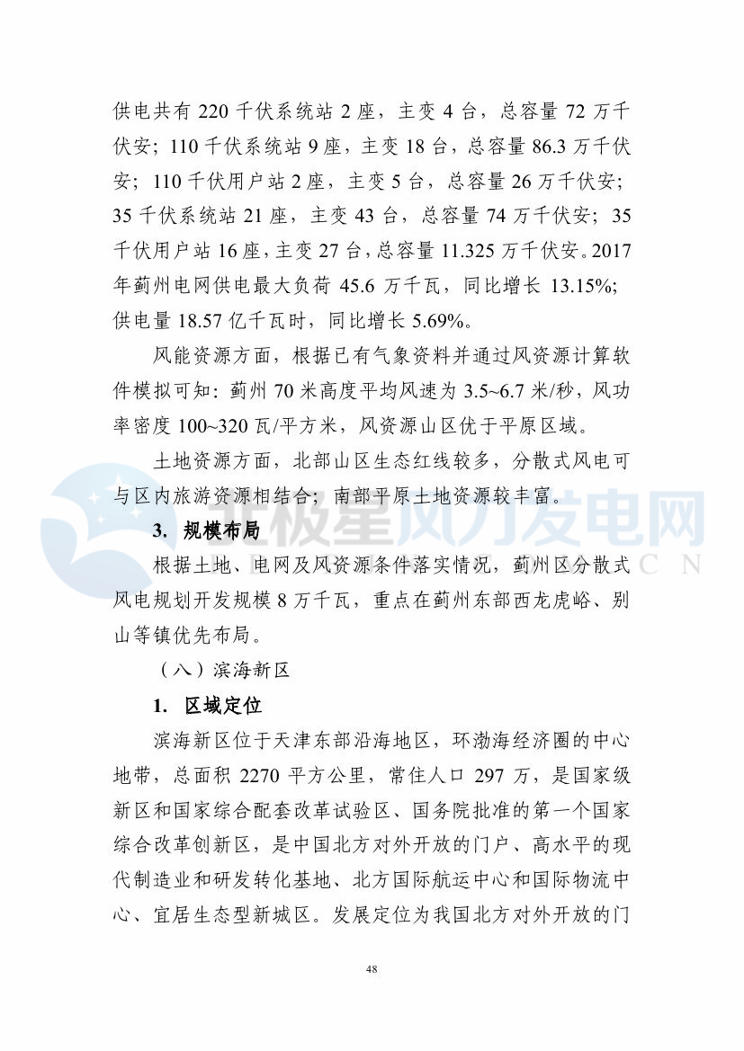 5、靜海區(qū)總體具備分散式風(fēng)能資源利用條件,可視具體接 網(wǎng)條件及土地利用要求,根據(jù)區(qū)域規(guī)劃實(shí)際和發(fā)展需要適時(shí) 46 開發(fā),預(yù)留開發(fā)規(guī)模 4.5 萬(wàn)千瓦。