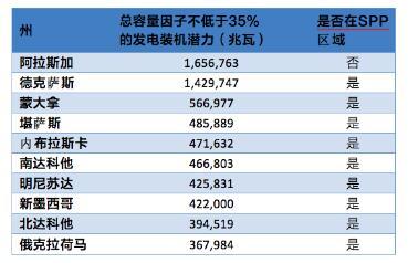 表1:全美各州高容量因子風(fēng)力發(fā)電潛力前十排名(來源:)