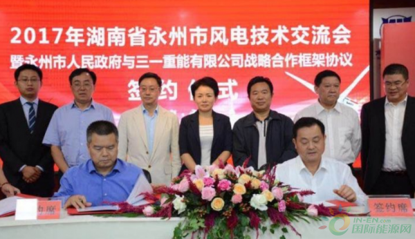10月11日上午,三一重能與永州市人民政府簽訂了戰(zhàn)略合作框架協(xié)議,雙方將在風電開發(fā)、風電項目投資和裝備制造等方面展開深度合作。簽約儀式前,召開了永州市風電技術交流會,交流風電新技術,對接三一重能,共