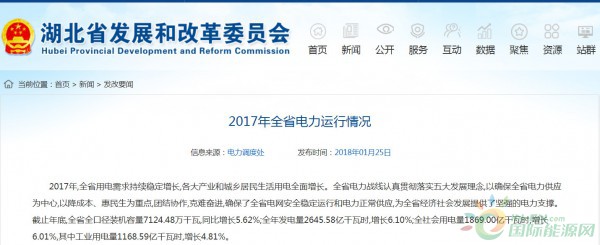 湖北發(fā)改委公布2017年全省電力運(yùn)行情況 風(fēng)電裝機(jī)252.83萬千瓦