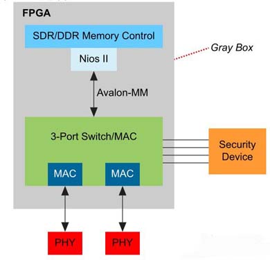 如圖 6 所示,將這些組件放在一起建立 “ 灰盒 ” 非常重要?;液邪?Nios II/f 處理器、黑盒 IP,以及存儲(chǔ)器控制器,必須將它們恰當(dāng)?shù)姆旁谝黄?,如隨每一協(xié)議 IP 發(fā)售的參考設(shè)計(jì)所示。您可以通過(guò)定義好的邏輯接口將您 ( 邏輯 ) 設(shè)計(jì)的其他部分和這一黑盒連接起來(lái),通過(guò)定義好的軟件應(yīng)用程序接口 (API) 使用協(xié)議棧,這一接口對(duì)于所有工業(yè)以太網(wǎng)協(xié)議是通用的。