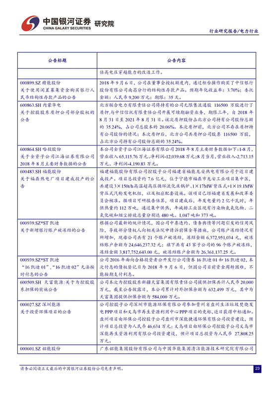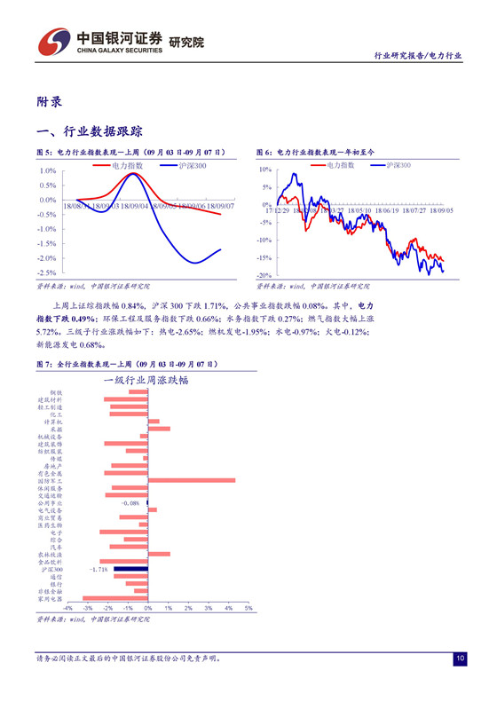 電價承壓,四季度火電業(yè)績面臨較大挑戰(zhàn)。 由于去年電價上調(diào)的時間點出現(xiàn)在 7 月份,火電公司下半年收入的同比基數(shù)將有所增加,疊加電力需求趨緩,煤炭成本上行的壓力,四季度火電業(yè)績可能面臨較大挑戰(zhàn)。不確定因素增加導(dǎo)致市場避險情緒升溫。受 2000 億的關(guān)稅清單消息影響,上周市場維持震蕩走勢,上證綜指日內(nèi)最大跌幅 1.68%,周跌幅 0.84%。建議關(guān)注業(yè)績改善空間大且安全邊際較高的火電公司,以及來水向好助推盈利提升的水電公司。 建議關(guān)注火電龍頭華能國際、華電國際及區(qū)域性代表公司福能股份、粵電力 A、皖能電力等。另外, 我們持續(xù)推薦水電龍頭長江電力。 公司作為全球最大的水電上市公司,資源稟賦優(yōu)異,分紅比例高,現(xiàn)金流價值凸顯。建議關(guān)注國投電力、川投能源、黔源電力等。
