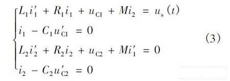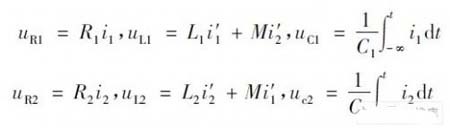 對于式(1),通過不同的處理將得到不同的數(shù)學(xué)模型。對圖1 所示的雙RLC 耦合回路進行去耦處理,得到2 個獨立的RLC 串聯(lián)回路。對式(1)求導(dǎo),則可得到二元二階方程組: